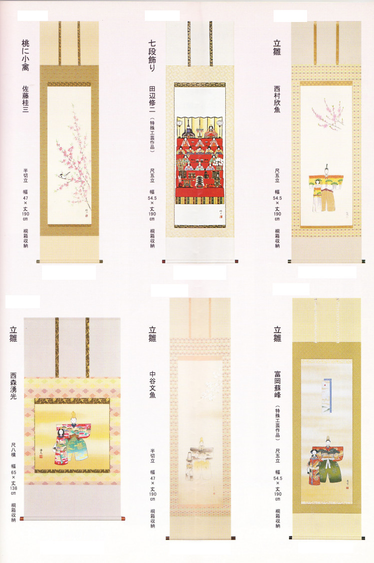 ご来店等で完成品をお引き取りにみえる方は、店内をご覧になって、ひなの軸をご覧になってひな人形の背景にこの軸は合うかしらとおっしゃって、軸をお求めになられます。