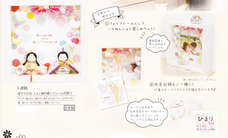 1-896 ぽてりひな2人(麻の葉)フレーム花飾り:¥16,500