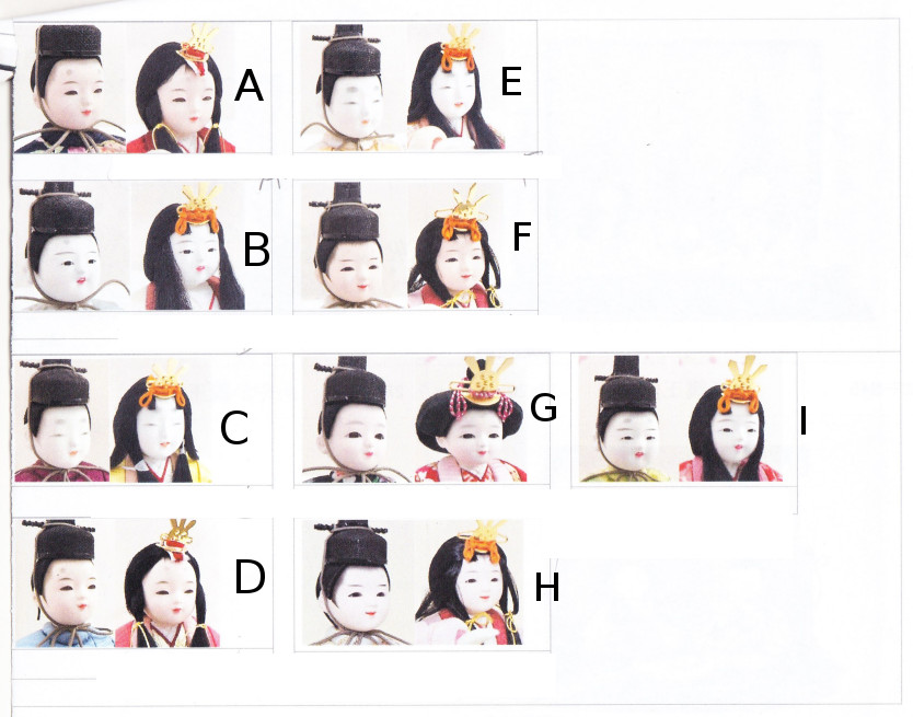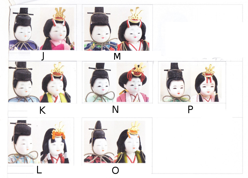 ご参考までに、かわいいお顔の目の表情、お顔の様子、かんざし等の一覧をご覧下さい。